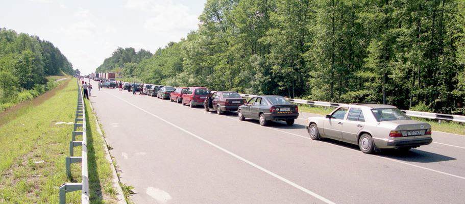Очередь на въезд в украинский терминал таможни в Новых Яриловичах. Длина – не меньше полкилометра. Наше счастье, что украинские машины свои таможенники пропускают домой без очереди и все удовольствия прохождения контроля продлились всего полчаса.