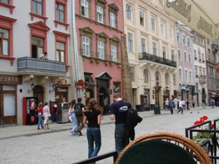 Кстати о пиве - Сан Интербрю испортил настроение продаваемым Львовским пивом, сделанным в .. Николаеве. Разливное на площади Рынок было райским почти после киевского сусла. Сидел и наблюдал за окружающими - даа, европа блин. Куда там нам. Долго пытался найти стандартные для Киева компашки тинейджеров с диким ржанием и дебильными выходками. Не нашёл. Пообедали в бистро, где аж 4 девочки быстро и наперебой мурлыкали "Шо то буде для вас?". Ужинали возле оперного театра в ресторанчике на воздухе. Цены околокиевские, обслуждивание мне крайне не понравилось.
