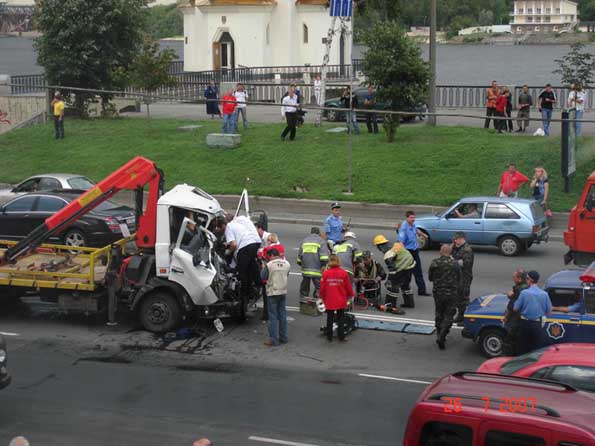 . Кран на гусеничном ходу, стройка метров за сто до эвакуатора. При падении сбил столб и эвакуатор стройка на борисоглебской, машина напротив дома наб Хрещатинская 15-17/18 (угол набережно Хрещатинской) " Информация от AS