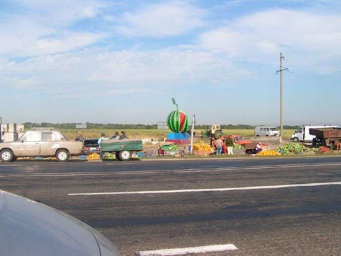 Поехал я еще раз в Крым. И снова через эту самую Каховку Прошлый раз дело было в воскресенье - потому наверное и пусто. А теперь - 23 августа, день и предпраздничный - и рабочий одновременно. На дорогах ахтунг. Таки да, отдыхающих на этом маршруте очень мало. Но все забито местным транспортом - грузовики (даже не фуры), древние Москвичи и Запорожцы... Движется все это броуновское движение с черепашьей скоростью. Короче, половину дорогу не покидало ощущение, что еду - никак не выеду из бесконечного пригорода какого-то рабочего поселка. Свобода началась только после Новой Каховки. Да и с покрытием не все так радужно. Первый раз как-то не попадал, а теперь вот 2 раза пробил подвеску на ямах.