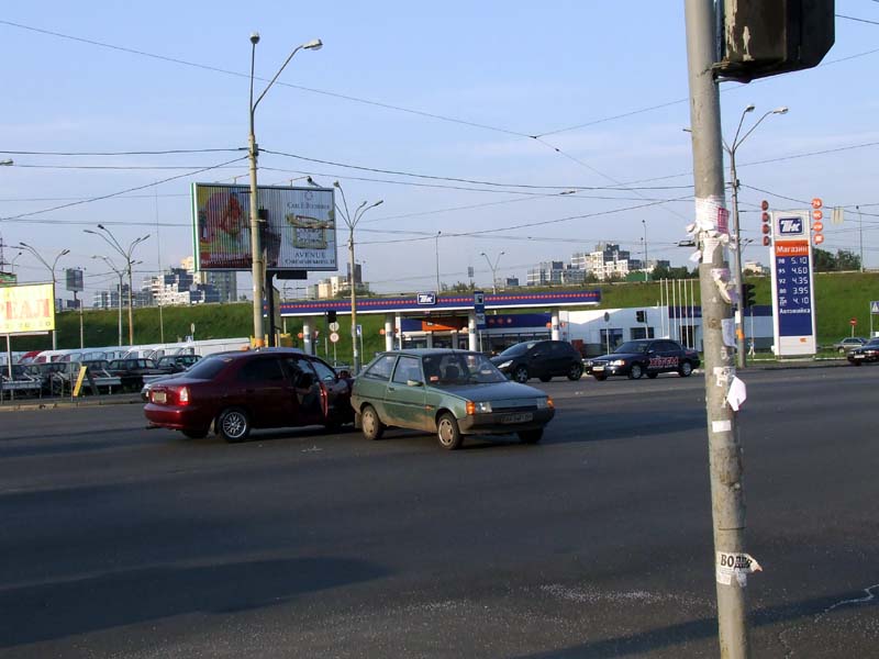 Второй день подряд на перекресте ДТП...:( Соответственно, на сабжевое время пробень - от Дорогожичей. Кстати, стОит проехать чуть-чуть и напротив МЕТРО можно лицезреть два паровоза (также в сторону Троещины), общей "стоимостью" 5 автомобилей... Московский также немного тянется, правда по непонятным причинам...