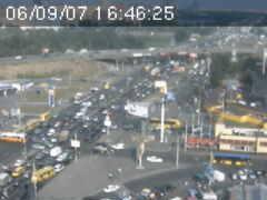 пробка від Петрівки до початку Московського моста, фура притерла якогось легковика (чи навпаки). З тієїж причини спостерігається тягнучка в протилежному напрямку.