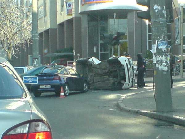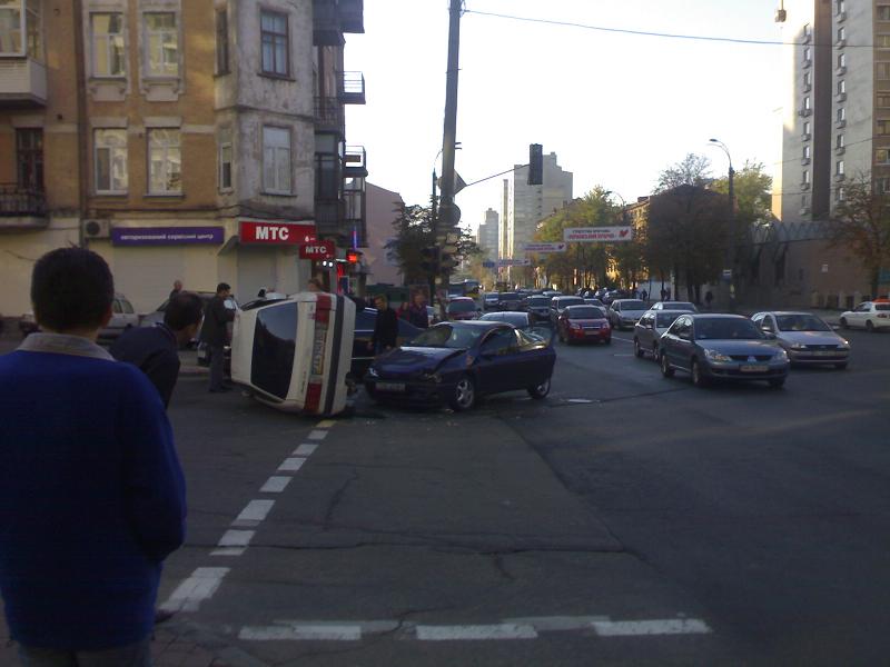 на перекрестке телиги и Ольжича. Боднутая в водительскую дверь машина перевернулась в воздухе и приземлилась на крышу