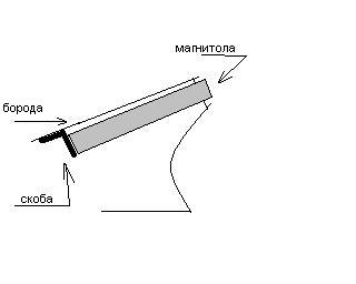 Ну вобщем, где-то так, сорри за какчество - не художник я. Жирная линия - та самая скоба. Во всех магнитолах, что я видел, есть сзади болт, к которому масса крепится, вот и скобу туда же, а к бороде саморезами или тоже винтиками. У меня так получается, что эта часть спрятана под торпедой, поэтому их не видно.