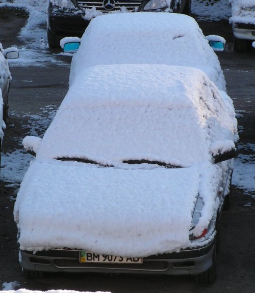 В этом году у нас 1-го мая летел снег, правда тут же таял. А на этом фото мой автомобиль 4-го апреля сего года (после Пасхи). Постоял на стоянке 1 ночь. Правда это было в Белгороде, но насколько я помню и в Киеве и вообще по Украине было примерно аналогично.