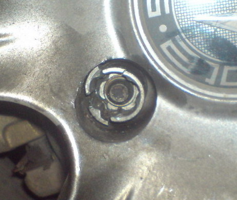 это секретка-гайка от стилавто, что одевается на шпильку. ключ вставлялся в секретку и сломал ее выше резьбы, теперь незачто зацепить. На фото если бы не мыло сломано то в нее бы вставлялся ключ. Сламалась сама гайка в месте захвата ключем, закрученая на шпильке, что то подобное как на фото