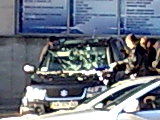 Собсно минут 30 назад. Владимирская. Здание банка НРБ. Припаркованный на тротуаре Сузук Грандвитара- разворачивается с намерением выезжать. Народ на тротуаре вежливо останавливается,пропускает - в сей момент с крыши глыба снега со льдом-на крышу авто. Удар. Лобовое в трещинах,на крыше складка. Подойти сфотать ближе- ну постеснялся