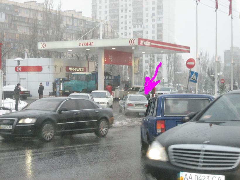 На заправке видать второй участник ДТП - Ланос(см. стрелку)