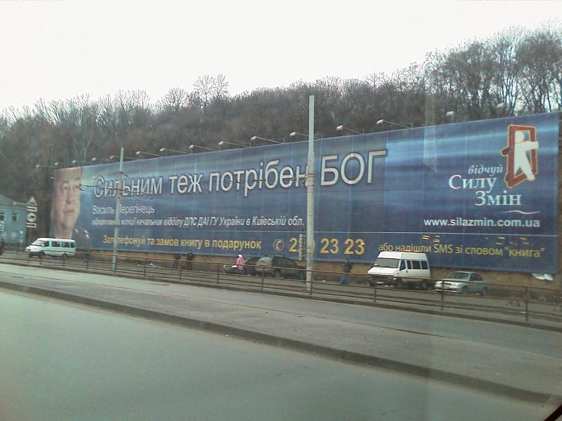 угу, сам такое наблюдал неоднократно. один раз тормозоил со свистом когда баран при выезде с бессарабки на шевченко из крайней правой полосы повернул на красноармейскую. так тот поганый мусор что там стоял отварачивался даже когда я его материл. у контрацептива номера были ао..чегототам. а насчет зрелищ - вот наблюдал сегодня см. файл. может конечно давно висит, но только обратил внимание.
