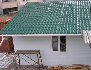 Размер строения (внутренний) 4.35х7,80 Свес (выстрел) крыши сбоку 1.28, спереди 1.40 Пол деревянный (шпунтованная доска 35) окрашенный, поверх дерева пром линолеум, лежит на довольно плотно установленных лагах (рассчитано на нагрузку - автомобиль). Более свежих фоток пока не делал. Если кому интересно - приезжайте, смотрите. Р-н Лен площади.
