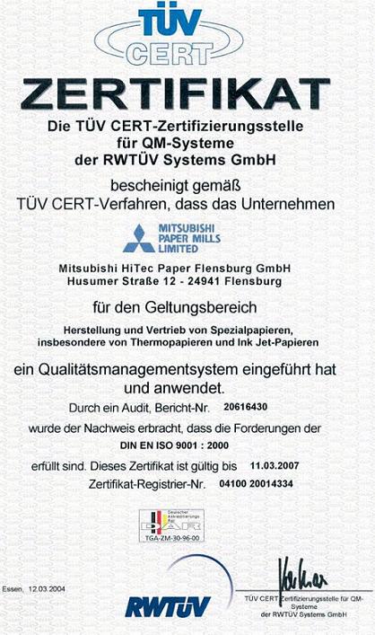 Номер отчета по аудиту 20616430, было проверено в соответствии с требованиями DIN EN ISO 9001 2000, требованиям удовлетворяет. Этот сертификат действителен до 11.03.2007 Регистрационный номер: 04100 20014334