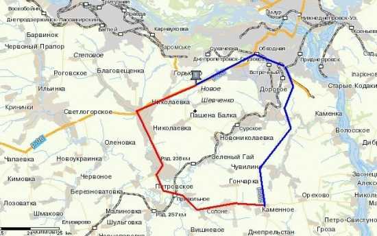 Не совсем так. Я сворачиваю направо еще в Днепродзержинске (поворот ничем не обозначен и находится среди заводских корпусов), в направлении на Сурско-Михайловку, перед ней пересекая трассу Днепропетровск-Кривой Рог и дальше на Аполлоновку-Соленое и на трассу Днепр-Запорожье. Экономия времени - час. Советовали сворачивать направо еще перед Днепродзержинском.