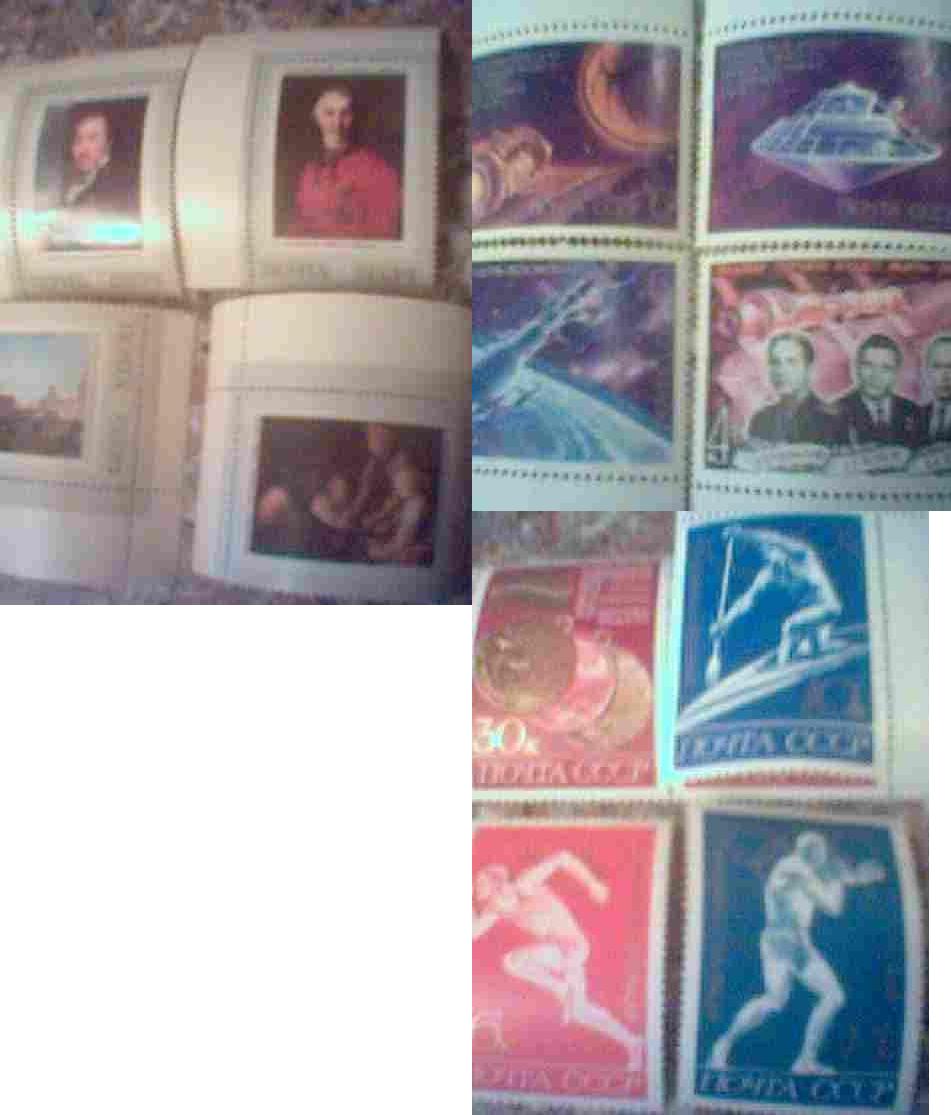 справа вверху серия космонавтики, в свое время была достаточно ценной. насколько помню там еще блок есть(надо по каталогу посмотреть, могу ошибаться). гашенные (этих годов) ценятся менее - это однозначно. много выгоды можешь и не получить. вся хронология СССР(все марки подряд) при социализме стоили порядка 6000 рублей - менее Волги. На "нивках" от метро к спорткомплексу люди собирались ранненько утром в субботу. попробуй подойти к ним.