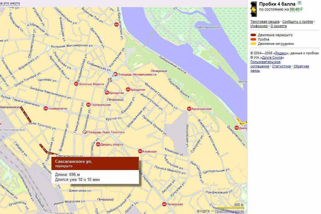 На Яндексе наблюдаю перекрытие Саксаганского уже в течении 10 часов. Что это? Глюк, или случилось что-то?