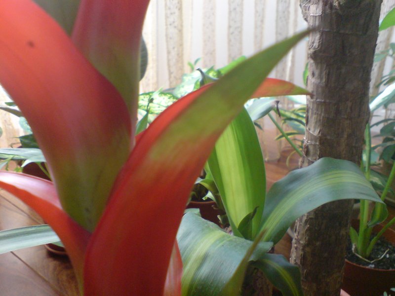 У кого растет гузмания? В магазине сказали, что красная часть - это листья, которые по мере роста меняют цвет на зеленый. Это можно наблюдать и на 2 фотке. Пошарилась по тырнету - ничего подобного нет в описании. Зато подробно рассказывают о цветке. Так что же это: его цветок или листья? Мне необходимо знать, т.к. хочется пересадить, чего нельзя делать в период цветения растения.
