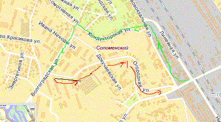 Стоп! Я соврал нечаянно. Огородняя на спуск только! Нужно на нововокзальную и кондукторскую. Дабы в лоб не получить. Сейчас картинку нарисую.