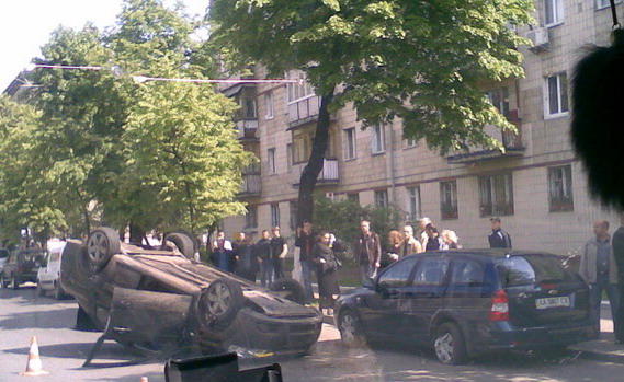 Сфотографировано сегодня около 12. Как так можно было . Недоезжая ~150м до прлощади Шевченко по ул Вышгородской
