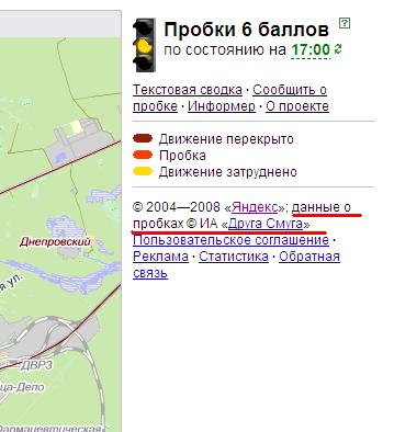 Яндекс на страничке с пробками отмазуеццо, шо, мол, за это атвичает "Друга Смуга"...