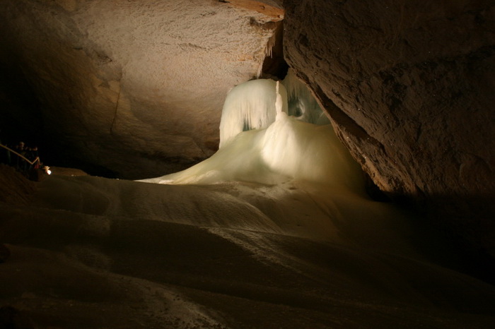 Если подняться повыше, то можно осмотреть ледяную пещеру, в которой даже летом температура выше -4 не поднимается. Один чудак притащил туда рояль, и дает бесплатные концеры. Акустика прекрасная.