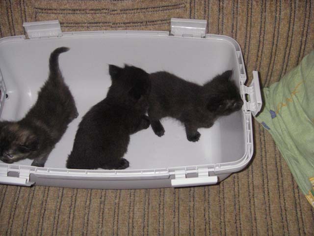 Отдаю в хорошие руки. Еще малыши - 1 мес. Два черненьких пушистеньких, у одного белый пузик Третий пушистик черно-рыже-серый Все веселые, игривые, хорошенькие. Прыгают, бегают - заберите их у меня. У мну уже трое есть. Фотки так себе, поробую еще получше нащелкать.