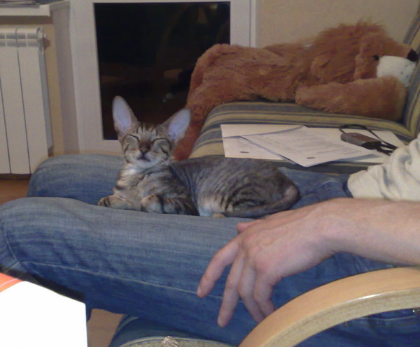 В общем поучастввовали в выставке в субботу-воскресенье. Какая была не знаю, так как участвовали первые раз. Задачу минимум выполнили - подтвердили породу и нам разрешили иметь породистых котят. Все очень устали, Коша всех хотела порвать - котов, чужих людей, я тоже к концу выставки . Наша кошка была единственная, которую снимали с искусственной пальмы на ринге - ну не выдержали нервы. Вот фотки