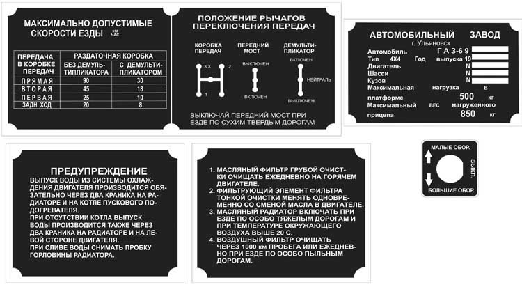 Вот.. Нужно сделать таблички под оригинальные на мой ГАЗик. В оригинале идут тонкие алюминиевые, рисовано чёрной краской. В идеале - сделать такие же. За невозможностью - на пластике.