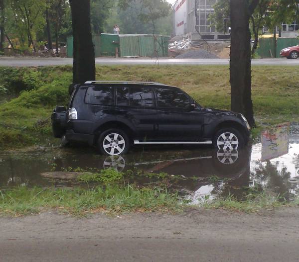 Какая же все-таки красивая машинка - Паджера Вагон 4... Даже в луже смотрится красиво.