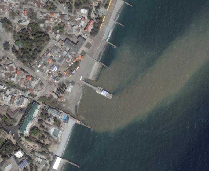 Фотка как бы не очень свежая. В этом месте сейчас много всего настроено. А алуштинские нечистоты сбрасываются юго-западнее - рядом с Санта-барбарой