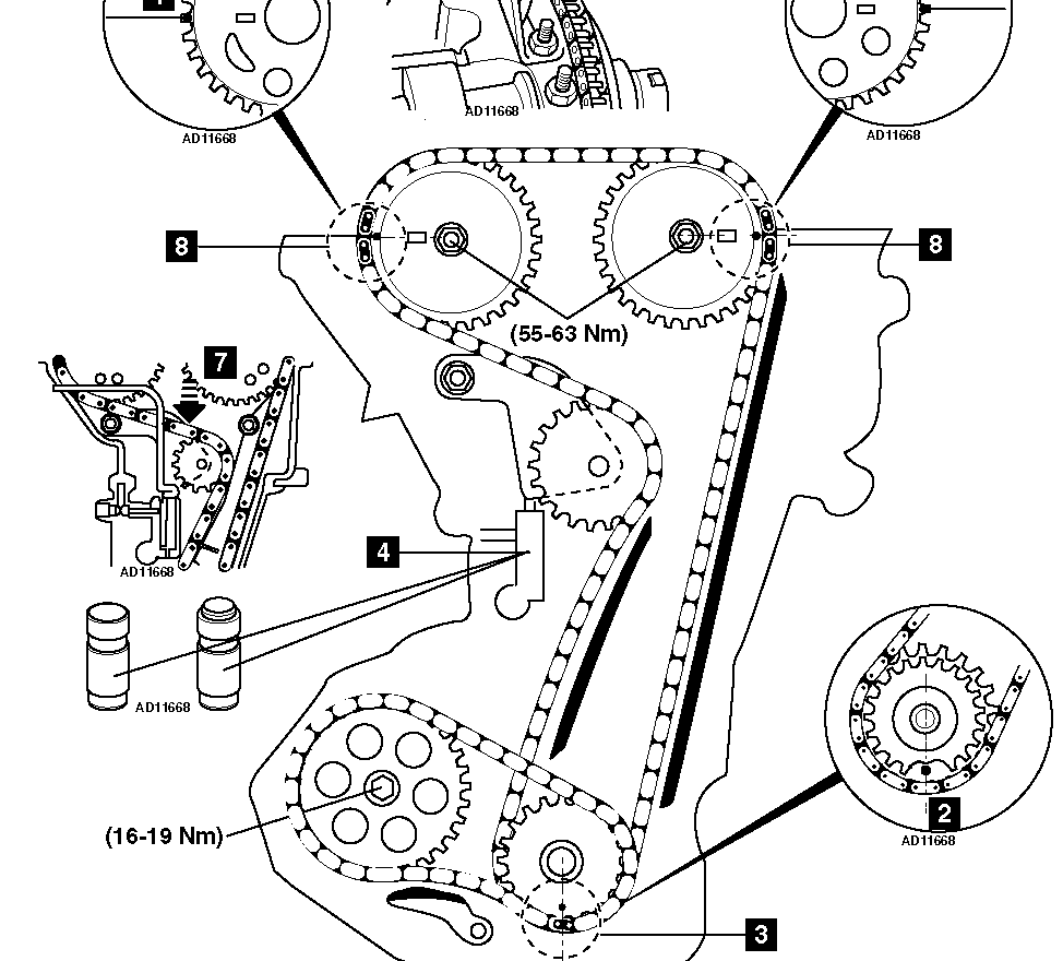 на колене точка внутрь меченого звена , на распредах зуб в звено которое между двумя мечеными