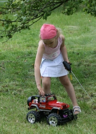 ну в общем наше машинко вот, малая довольна ))) сажает в нее своих зверюшек и катает по участку ) радиуса действия от забора до забора хватает, по траве тож ездит если брать меньше колеса - не будет по траве ездить стопудов