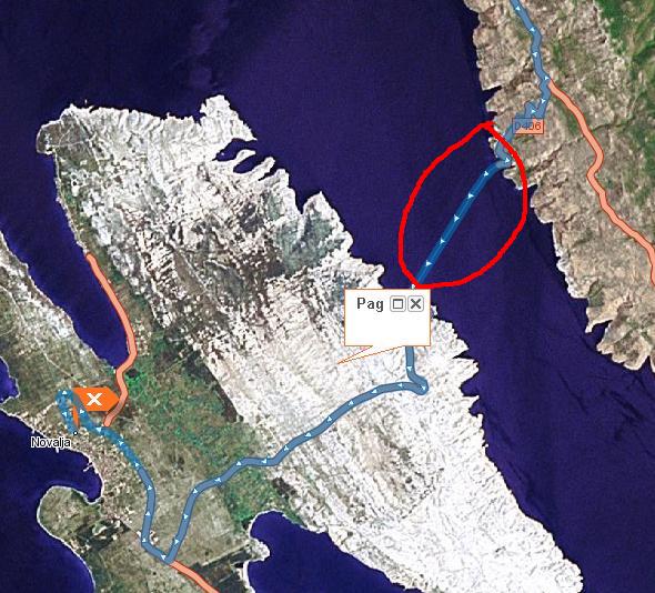 Kto-nibud tut bul? Eto ostrov Pag (kartinka). Interesno, cto eto za pereprava (obvedeno).