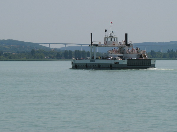Паром з півострова Тихань. На задньому плані міст по якому проходить автобан М7