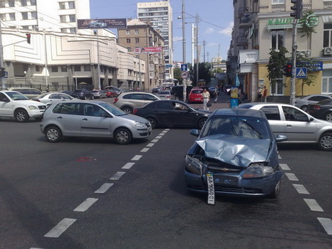 Кто кого не пропустил не знаю Авео видимо по Жилянской, а Каптива сверху по Горького В итоге БА-БАХ