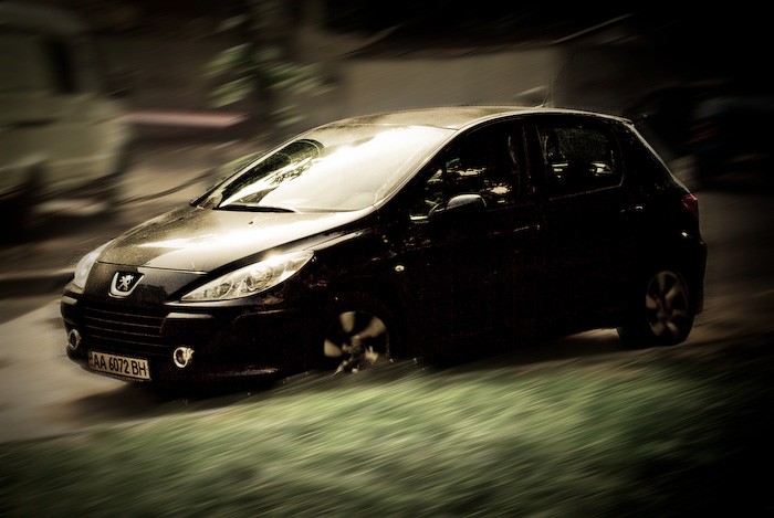 Та то фотошоп халтурный: простейшая маска, размытие в движении, два радиальных на колёса.