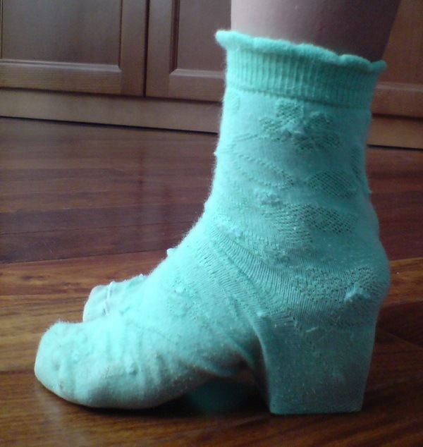 Какая маленькая девочка не мечтала поскорее вырасти, носить каблуки, краситься и пр...? Мои - не исключение. А так как каблуки в таком возрасте не положены, они нашли выход: подложили в носки в районе пятки деревянные кубики и ходили цокали по паркету, типо взрослые тетки