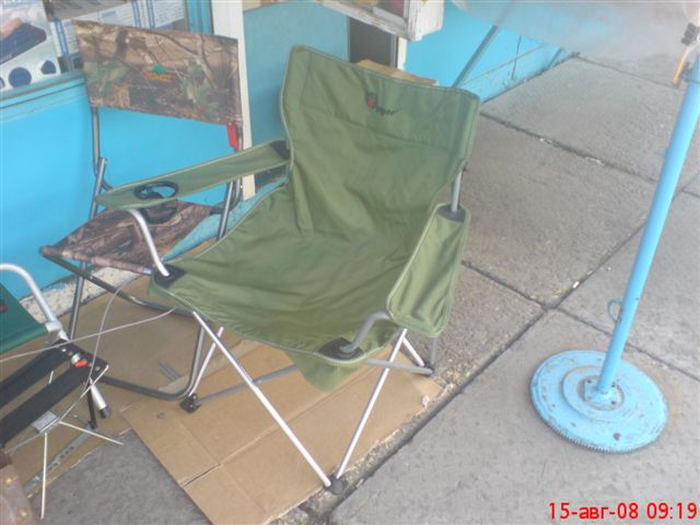 Вот это зилоное раскладное в общем-то отстой. Мы используем купленные в "Спортмастере" и на Петровке складные, которые не в трубочку сворачиваются, а плоские такие. С подлокотниками. Они гораздо удобнее, жёстче по конструкции и сидеть приятнее. Мы много всяких перебрали