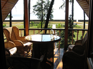 особая прелесть номеров на 2 этаже трилистника - балкон, выходящий на море с плетеными креслами - он, в общем, рассчитан на постояльцев всех трех номеров 2-го этажа, но вроде как тесно не было.