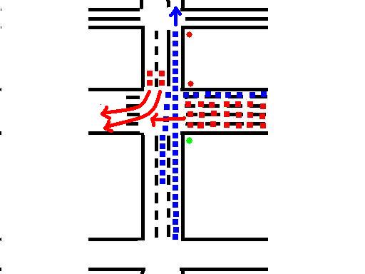 Ля! Сегодня добавился новый такой перекрёсток. Гениальным решением космонавта было поставить светофор на перекрёстке Щорса и Предславинской. И включить его сегодня утром... Я еду с Горького по Щорса вверх до печерской. Поворачивая с Горького на Щорса заподозрил неладное т.к. сразу за пешеходным переходом упёрся в авты, растянувшиеся на всём отрезке Щорса между Красноармейской и Горького. Пропустил два зелёных и вот я первый на светофоре перед Красноармейской. Предстала передо мной следующая картина: Щорса на участке от Красноармейской до Предславинской забита полностью; выехавшие передо мной "мне очень надо" стали на перекрёстке и перекрыли 2 ряда Красноармейской в сторону центра; Крайний правый ряд Красноармейской тоже успел накопиться машинами так, что на Щорса на свой зелёный рыпаться нет смысла т.к. сразу упираешься в стояк. Изображаю наглядно в прикреплённом файле (надеюсь понятно). Горизонтальные улицы (снизу вверх): Горького, Красноармейская, Предславинская. Вертикальная: Щорса