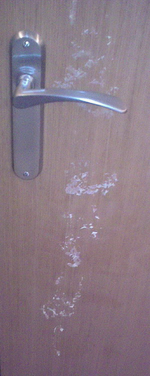 Предлагаешь всем клубом ездить к тебе домой изучать лаковое покрытие на твоей двери? Имхо, в гугле уже есть миллион решений, а если нету, то найти их можно за два часа изучая баночки в эпицентре.