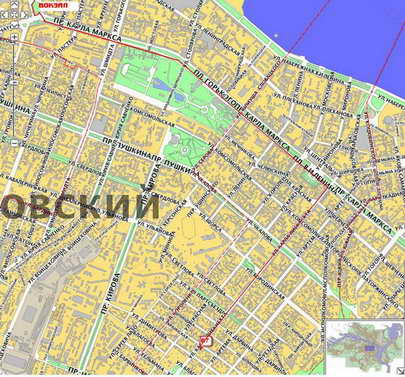 видно плохо получилось, пережал... ну там понятно все - с вокзала по главному проспекту К.Маркса с него поворот на К.Либкнехта - а там прямиком - один светофор и дальше она главная везде... объездные пути сейчас хуже - ремонт стадиона поперекрывали многое, общий километраж км 6-7