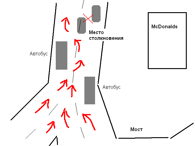 Ага, проезжал это место ок. часа назад... пробка только начиналась. Что сейчас не знаю. А ДТП, конечно, еще то... Двое не поделили дорогу, результат - притерлись (всего-то), если будут ждать ГАИ, будет . Вот схема: