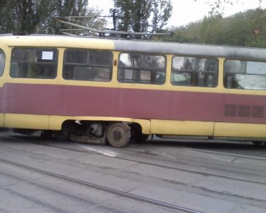 Никак у трамваев началась падучая  В начале Глыбочицкой, в направлении Лукьяновки развернуло поперек дороги второй вагон трамвайной сцепки.