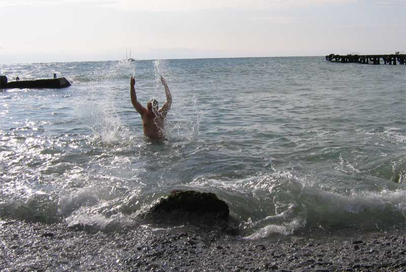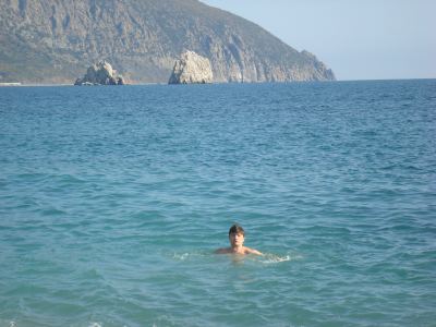 Во вторник повалялись на пляже в Гурзуфе. Водичка 16-18. В последующие дни было еще теплее и на пляжах народу было больше, чем в разгар сезона лет 10-15 назад. Вообще, кризис крымчане пока что не ощущают, военный санаторий в Гурзуфе, например, собирается с этого года круглогодичным. Сейчас там 500 отдыхающих, видимо благодаря им до сих пор работают несколько кафешек на набережной и одна даже на волнорезе.