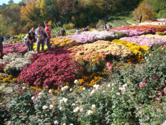 В воскресенье, кроме пляжа, посетили Ботанический сад(12 гривен взрослый билет). Мы уже видели хризантемы 2 года назад, но я не ожидал что в саду будет столько народу, такого количества людей я еще не видел и это уже было после 13:00. Некоторые сорта хризантем еще только распускаются, некоторые цветут вовсю. Кто не видел- рекомендую, только не в выходной или пораньше, часов в 8 утра.