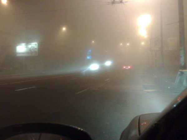 Зачотный туманчег был... Я в час ночи ехал через Южный домой, скорость 20-30км/ч, как тут уже говорили тоже с чистой совестью включил задние ПТФ, видимость вперед 5-7 метров, ориентировался тока по разметке, вправо-влево ваабче ниче не видно, никого вокруг, тишина, только звук моего мотора слышно, проезжаю мост на Осокорках-Опппа!!!-мост, под ним тумана нет, Позняки-Опппа-мост, тож самое, мне перед м.Харьковская направо поворачивать на Ревуцкого так чуть мимо не проехал, нифига видно не было. Че-та фильмы Спилберга вспоминались, счас думаю как зомби какие-нибудь со всех сторон как повалят на меня, или приезжаю к стоянке а вместо нее дыра и конец земли иль еще че-нить такое, доехал домой, поставил машину и выпил пива... попустило