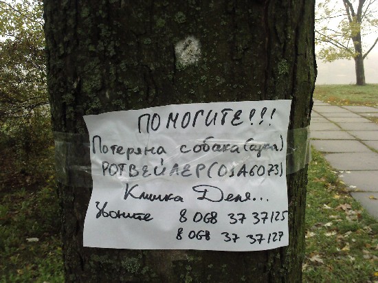 После породы. Код какой-то? Объявление сфотано сегодня (1 ноября) на Русановской набережной (именно со стороны набережной, а не домов), может, кому пригодится информация...