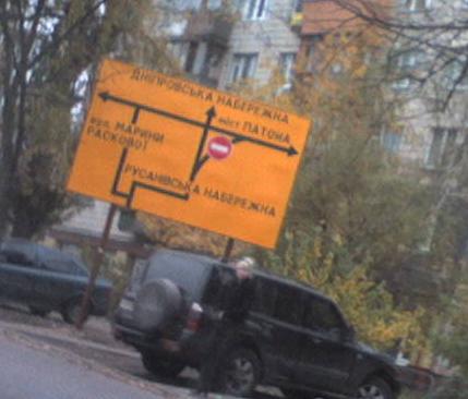 так. по картинке нифиге не понятно реально, так нарисовали что я секунд 20 втыкал... и то, так и не понял, то ли с русановки прямо через мост(?) можно а вправо каким-то мараком на мост кирпич.. или на днепровскую набарежную кирпич а на патона можно... там всё перепутали!