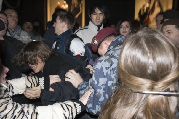 фотками всего не передашь. по УТ-1 было как беркут НОГАМИ бил учасников акции не говоря про банальщину в виде выворачивания рук и т.п. при том что акция была мирной и лица никто не скрывал. даже девушки оделись зайцами грызли капусту и держали плакат "не хотим быть зайцами" ну а про НЕперекрытый в выходной день крещатик и НЕвключенное уличное освещение уже сказали....