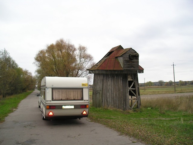 Поехали. За селом Ладинка, на берегу Десны целый городок из баз отдыха. Последняя в ряду - «наша». Небольшая, но вполне ожидаемая проблемка заключается в том, что асфальтированная дорога заканчивается в селе. Потом ~ 1-1,5 км по грунтовке. Терпимо, но стремно. С коротким караваном там вообще проблем бы не возникло, очень длинный бы не проехал, ну а свой мы как-то протащили.