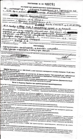 Постанова у справі про адміністративне правопорушення складається у двох екземплярах, один з яких вручається особі, яка притягається до адміністративної відповідальності.